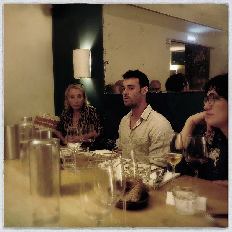 On garde le meilleur pour la fin avec Claret Net, un clairet du Sud né, sur plateau karstique abondamment venté, de vignes de ribayrenc, de piquepoul noir et de cinsault. Non, on n’est pas à Bordeaux, on est dans la veine de ces « nouveaux rouges » faciles à boire qui tendent vers le rosé ; des « blouges » comme les appelle Christophe Bosque du domaine De Vini. Mais ici, pas de doute, la robe ne tend pas vers le rosé, on est bien en rouge. Fermentation d’une nuit en cuve d’inox à 20 °C maximum, non filtré, ce joli vin grenadine se distingue par un fruit présent mais contrôlé, une quasi-absence de tannins, une acidité fraîche et une robe rouge clair limpide. On prévoit qu’il vieillira de façon intéressante, on l’imagine aussi avec un peu d’effervescence car il y a comme un petit accent « lambrusco » sans le sucre : l’accord avec le dessert proposé par le chef de Narro — une harmonie rhubarbe et sureau adouci d’une douce meringue — était de ceux que j’appelle médiumniques : on pouvait se dire en présence de la version dessert du vin et de la version vin du dessert.